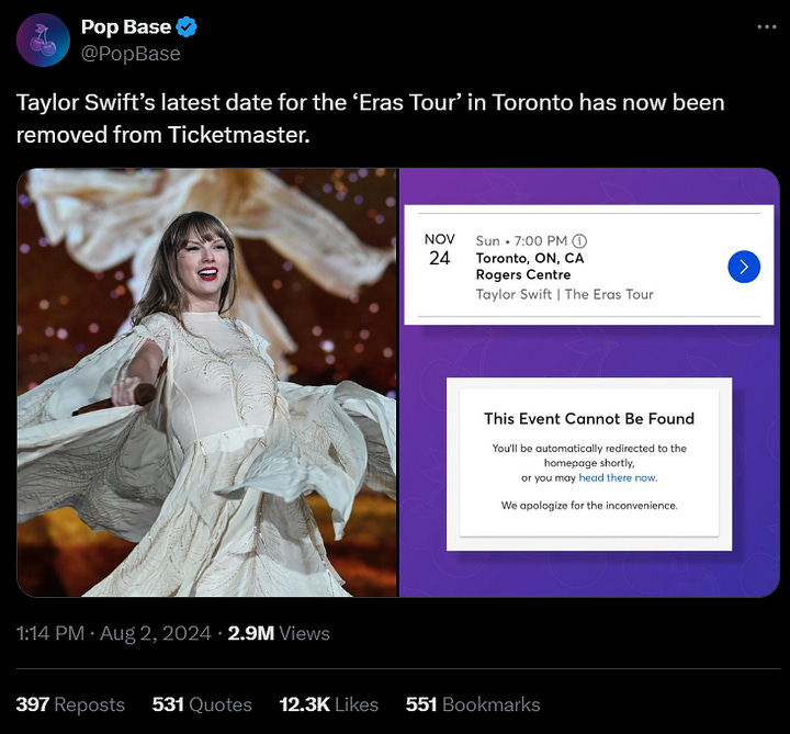 A seventh concert date for Toronto, ON, for Taylor Swift’s popular Eras Tour was added to Ticketmaster’s website Friday. Swift is scheduled to perform on November 14, 15, 16, 21, 22, and 23.